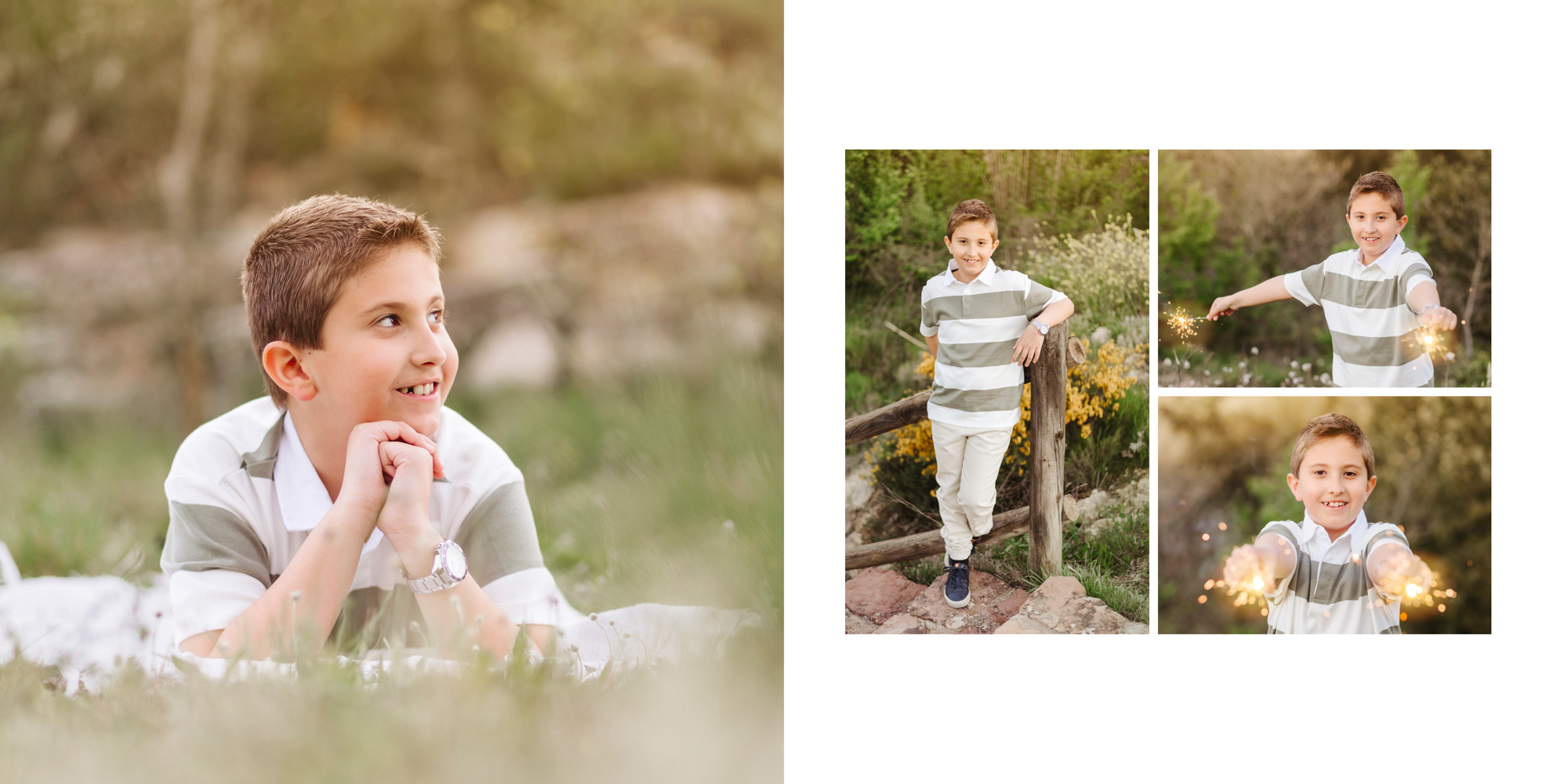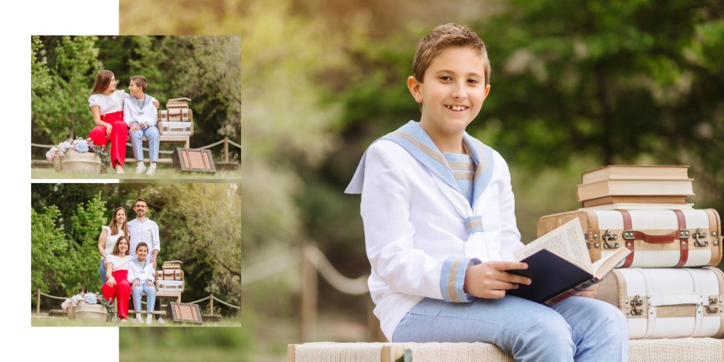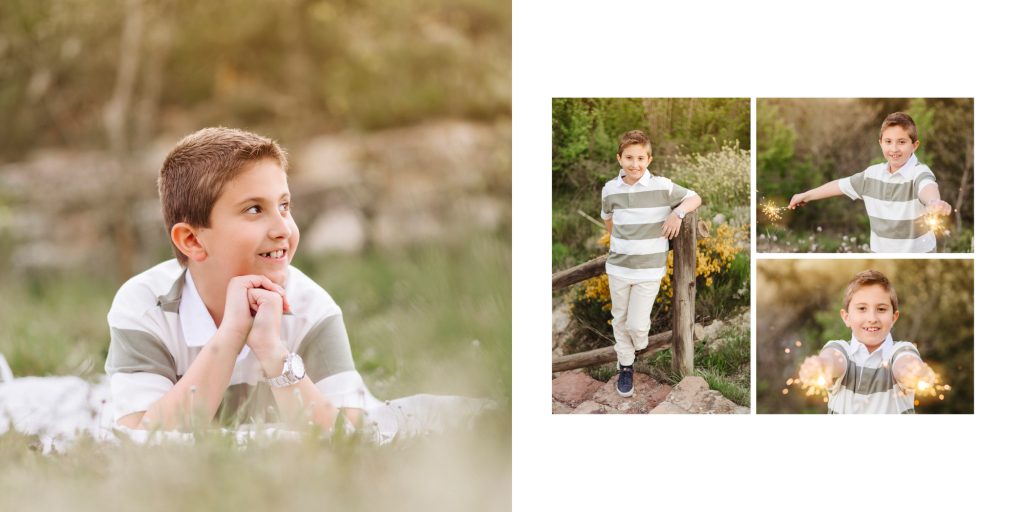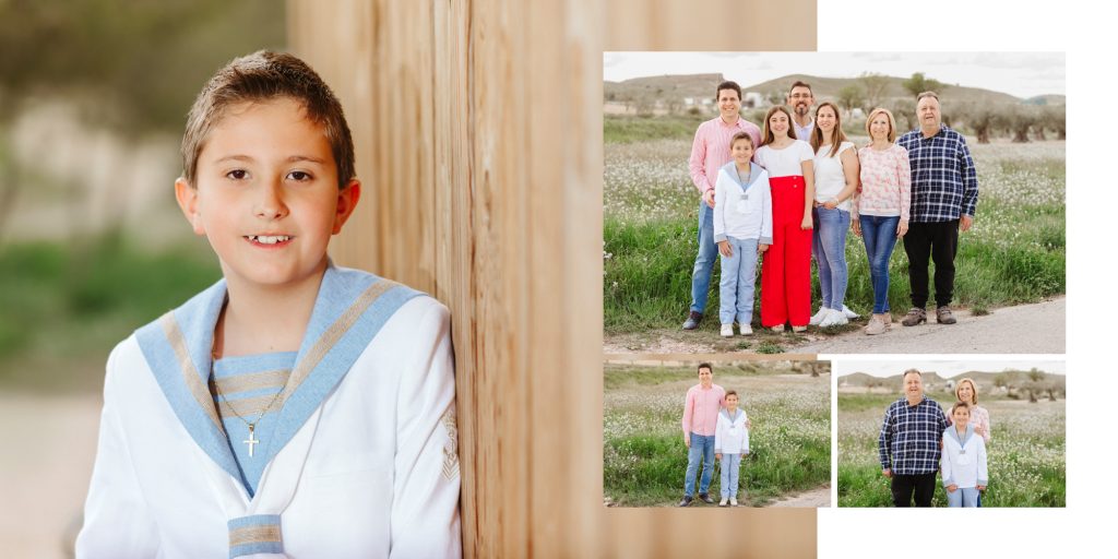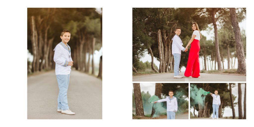 - En todos los packs con álbum. Tendréis que mandarnos el nombre, la fecha de la comunión. También deberéis elegir una foto para la foto portada (si es un retrato de primer plano debe tener espacio con fondo o cuerpo para no poner el nombre y la fecha encima de la cara), en caso contrario indicarnos que queréis grabado o impresión y que queréis que aparezca, si nombre + fecha o nombre solo.