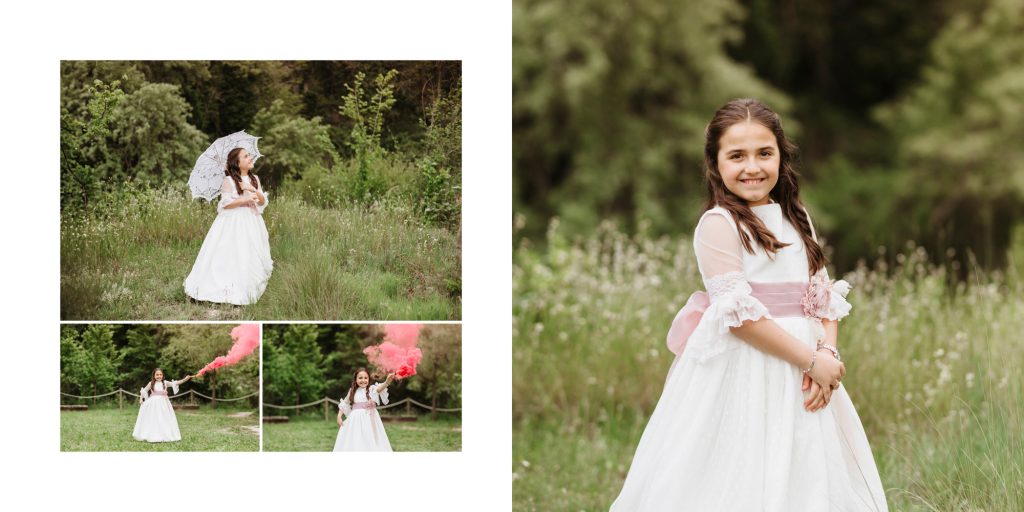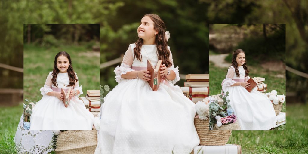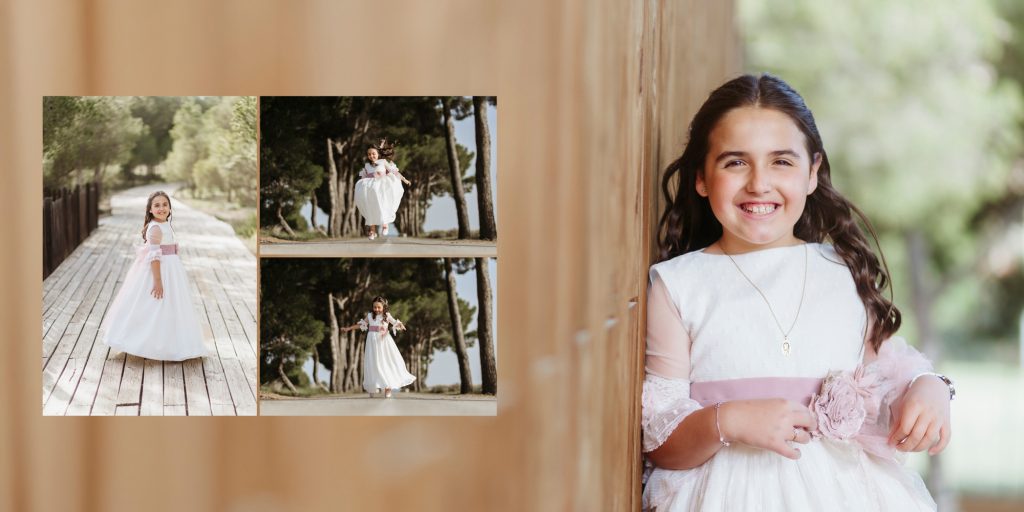 - En todos los packs con álbum. Tendréis que mandarnos el nombre, la fecha de la comunión. También deberéis elegir una foto para la foto portada (si es un retrato de primer plano debe tener espacio con fondo o cuerpo para no poner el nombre y la fecha encima de la cara), en caso contrario indicarnos que queréis grabado o impresión y que queréis que aparezca, si nombre + fecha o nombre solo.